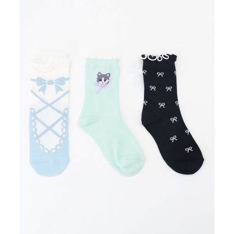 【3点セット】ソックス (ネコ×リボン)