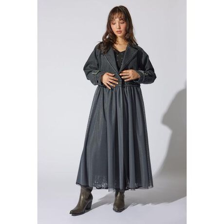 【女性らしくエレガントでフェミニンな雰囲気が魅力的なチュールコンビトレンチコート】■ポイント短丈のショートコートとウエスト下からドッキングされているチュールコンビ合わせの技ありデザイン。ウエストからチュールは取り外せるので、ショートジャケットとしても着用していただけます。ウエストにはトレンドでもある太ベルトをセット。ベルトを付けて、ジャケットワンピとしても着用でき、ベルトを付けずに羽織ることも可能です。様々な着用の仕方が叶うMANYWAY仕様のアウターです。少しゆったり目のサイズなので、寒い時期は中に厚めのニットも着用していただけます。■ディテール裾に向かって優雅に広がるチュールのフレアラインで春らしい軽快な仕上がりに。■スタイリングウエストベルトつけて、ジャケットワンピとして着用。ウエストベルトせずにラフに羽織る。チュールを取り外してショートジャケットとして着用。■生地透け感:上:なし、下:あり裏地:なし伸縮性:なし光沢感:なし厚さ:上:中肉、下:薄手■商品のお気に入り登録お気に入りアイテムの再入荷・在庫1点などの通知を受け取ることができます。[注意事項]※画像の商品はサンプルです。実際の商品と仕様、加工が若干異なる場合があります。※画像の商品は光の照射や角度、お使いのモニター環境により、実物と色味が異なる場合がございます。※着用、お取り扱いの際は、アテンションタグをご確認ください。