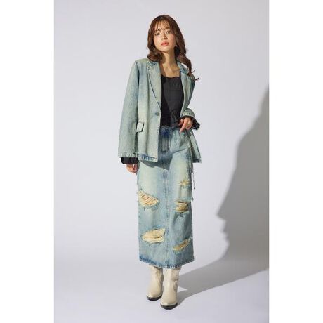 【着るだけで旬コーデが完成するデニムタイトスカート】■ポイント女性らしさを引き立てるタイトデニムスカートにレイヤードデザインとクラッシュデザインが入り、今年らしく着用できるアイテム。クラッシュを入れる位置にも拘り、スタイルが綺麗に見えるようにしています。また、両サイドにオープンデザインを取り入れヘルシーな肌見せもポイントに。■ディテールriendaらしいSEXYさを出せる両サイドオープンや、程よいクラッシュデザインで今年らしい華やかなデニムスカートに仕上げました。■スタイリングどんなトップスにも合わせやすいです。【110IS710-0311:テーラーカラーデニムJK】とカラーを合わせているので、セットアップとしても着用していただけます。■生地・加工透け感:生地自体には無し裏地:なし伸縮性:なし光沢感:なし厚さ:中肉程よい厚みと柔らかさを兼ね備えた12.5OZのコットン100%デニム生地を採用。ヴィンテージ感のある加工感を再現。クラッシュなどハードな加工を施していますが、位置や大きさ、形状にもこだわって女性らしく上品に仕上げました。■商品のお気に入り登録お気に入りアイテムの再入荷・在庫1点などの通知を受け取ることができます。[注意事項]※画像の商品はサンプルです。実際の商品と仕様、加工が若干異なる場合があります。※画像の商品は光の照射や角度、お使いのモニター環境により、実物と色味が異なる場合がございます。※着用、お取り扱いの際は、アテンションタグをご確認ください。
