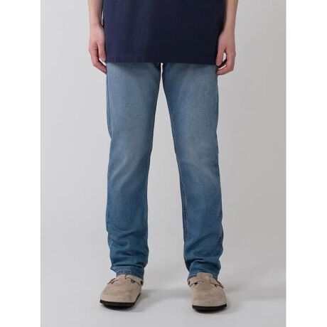 リーバイス□のベーシックシルエットの一つで、ストレートとスキニーの中間に位置するスタンダードなスリムフィット。ストレッチ入りで伸縮性のある生地、浅めの股上なので、股下から裾にかけてきれいなシルエットが出やすいのが特徴です。スリムなシルエットながら綿79%にポリウレタン1%、ポリエステル19%を配合しているので、耐久性は勿論、伸縮性や速乾性に優れています。爽やかなライトカラーなので春先にもお勧めの一本です。