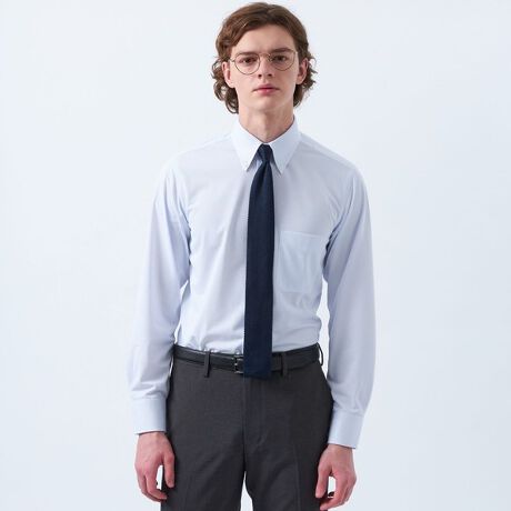 オーソドックスなボタンダウンシャツ。襟先に適度なロール感があり、立体感のあるVゾーンを演出してくれます。