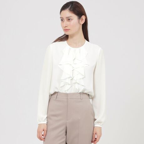 流れるような曲線のフリルをふんだんに使用した華やかなブラウスです。