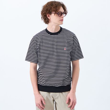 スウェットデザインを取り入れた、遊び心のある半袖Tシャツ