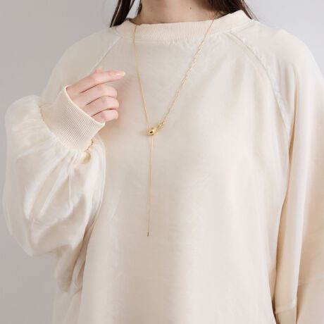 華奢なロングチェーンが揺れ動くラリエットネックレス。