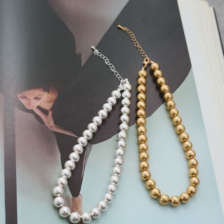 すこし大きめなサイズのボールチェーンがボリューム感あり、旬な雰囲気に。