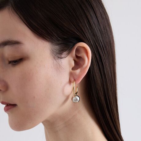 メタリックなボールが揺らめくリングのようなサークル形状のピアスです。