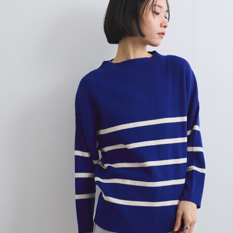 ボトルネックニットボーダートップス≪手洗い可能≫