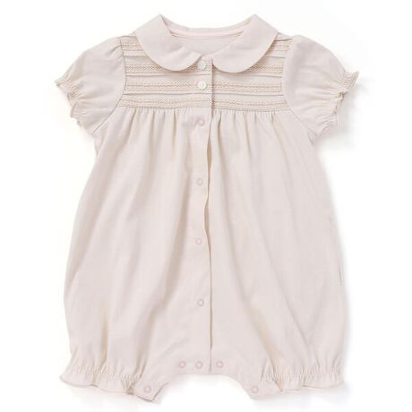 胸元のレースがキレイな女の子用半袖カバーオール。