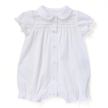 胸元のレースがキレイな女の子用半袖カバーオール。