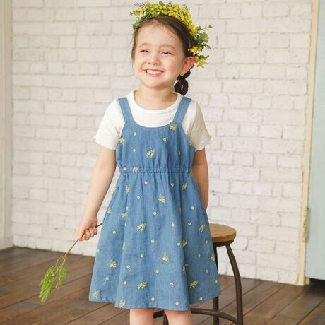 【おそろい】ミモザ刺繍ジャンパースカート