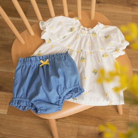 【ベビー/おそろい】ミモザ刺繍トップス&ボトムスセット