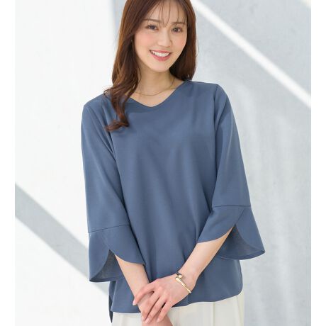 ・花びらのように優しく広がるフラワースリーブ。