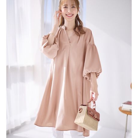 パフ袖とろみブラウスチュニックワンピース