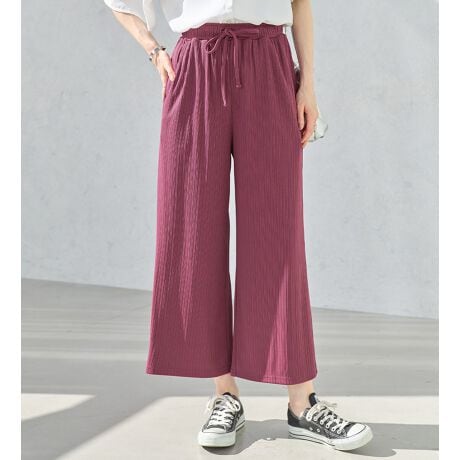 ・共布のウエスト紐付きなので、お好みで絞ることができます。インしたり短丈トップスと合わせてもこなれ感がでます。