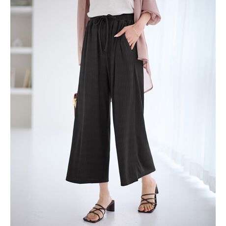 ・共布のウエスト紐付きなので、お好みで絞ることができます。インしたり短丈トップスと合わせてもこなれ感がでます。