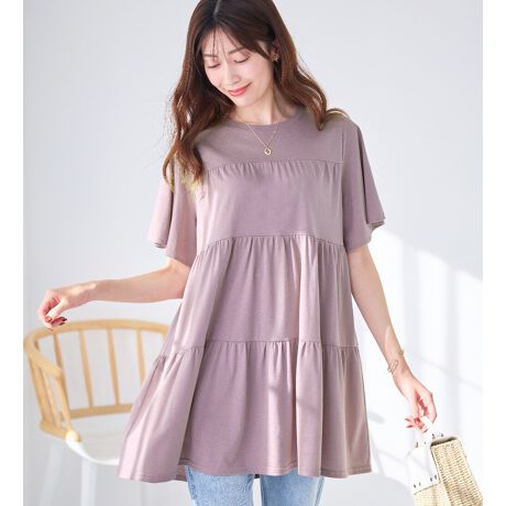 身頃のティアードデザインが目を惹き、カジュアルすぎず大人可愛く決まります。