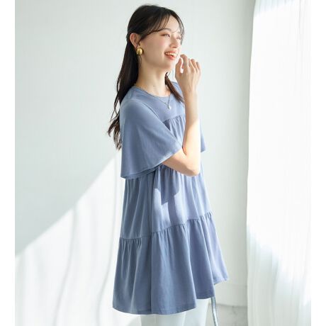 身頃のティアードデザインが目を惹き、カジュアルすぎず大人可愛く決まります。