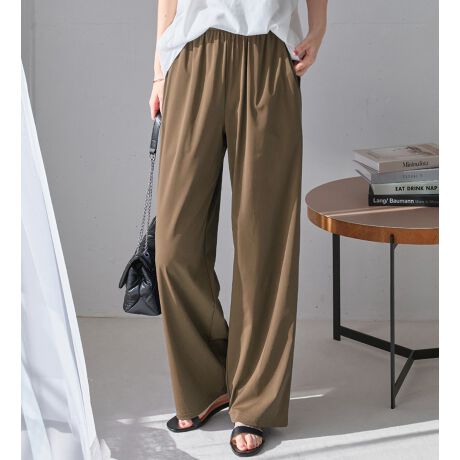 ・すとんと落ちる素材で脚のラインを拾いにくく、すっきり美脚見せを叶えます