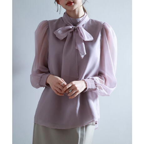 リボン使い3wayの大人可愛いオーガンジー素材ブラウス