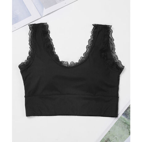 肩と襟ぐりの淵レースが華やかなデザインです。見せブラトップとしてレイヤードしてもOK。