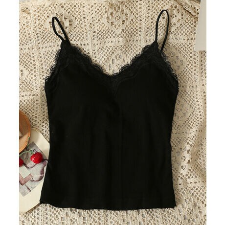 大人レースが映えるカットソー生地のレーストリムキャミソール。