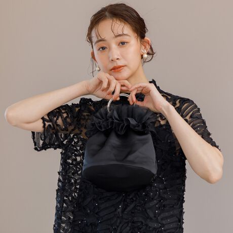 kaene人気のリングハンドルバッグにポイントフリルをあしらったフォーマルバッグ。