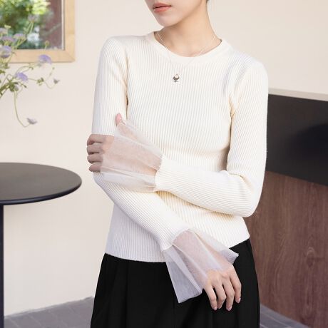 フレアスリーブがチャームポイントの万能ニットが新登場。