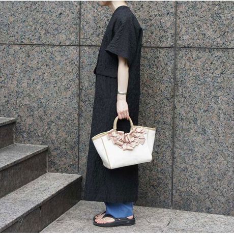 フェミニンなデザインが特徴トートバッグは、