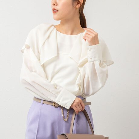 ・1枚で着映えるシアー素材のフリルブラウス