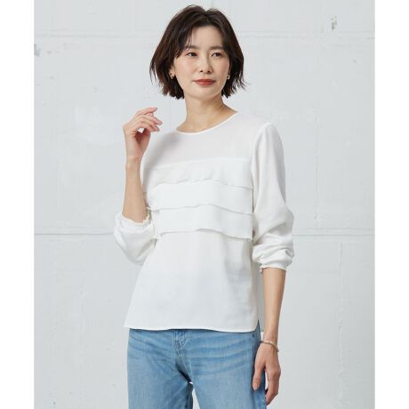 3段フリルでサマになる、波のような表情感のブラウス
