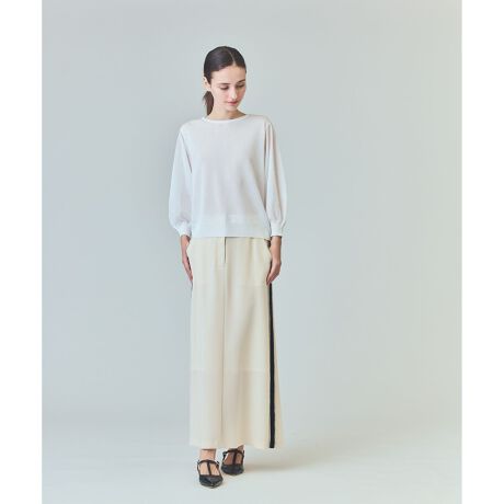 繊細なラメ混の糸で編み立てた2WAYニットトップス。透け過ぎない程よいシアー感やギラギラし過ぎないラメ感が、何気ない日常の装いをアーバンムード溢れる着こなしへとアップデートしてくれます。袖にボリュームをもたせた愛らしいフォルムもポイント。バックスタイルが釦開きなので、前後逆に着ればカーディガンとしてもご着用いただけます。どんなスタイリングにも溶け込む、着まわしやすいベーシックカラーをご用意しました。