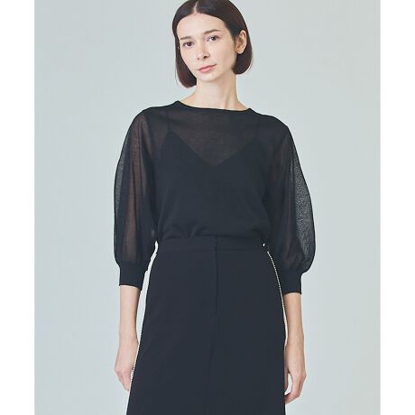 繊細なラメ混の糸で編み立てた2WAYニットトップス。透け過ぎない程よいシアー感やギラギラし過ぎないラメ感が、何気ない日常の装いをアーバンムード溢れる着こなしへとアップデートしてくれます。袖にボリュームをもたせた愛らしいフォルムもポイント。バックスタイルが釦開きなので、前後逆に着ればカーディガンとしてもご着用いただけます。どんなスタイリングにも溶け込む、着まわしやすいベーシックカラーをご用意しました。