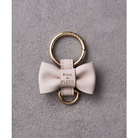 ぷっくりとしたレザー調素材のリボンがポイントのキーリング。