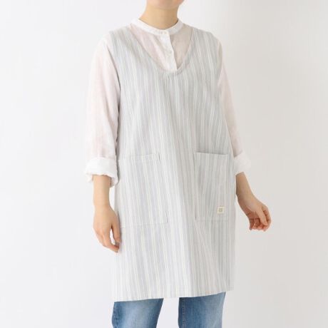 肌触りがよく、長時間着用しても快適。着るだけで、お料理する気分も上がる、シンプル&スタイリッシュなダブルストライプデザインが特徴です。