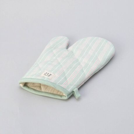 手首までしっかりとカバーしてくれるミトン。ループ付きで、フックなどにかけておくことが可能。シンプルな配色はキッチンのワンポイントになります。