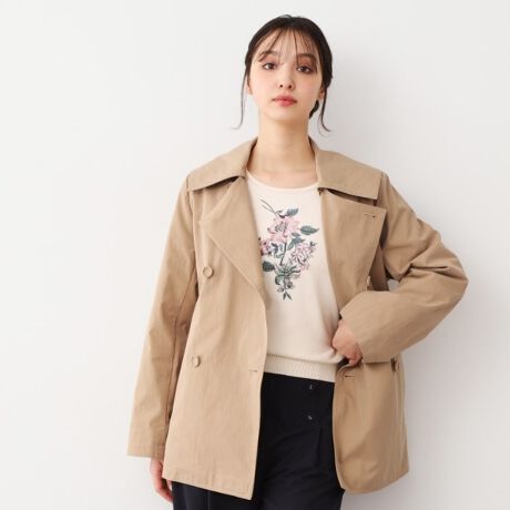 襟の形がかわいいと思って購入しました。裏地がしっかりついている分、トレンチとしては重めです。早くこれを羽織る季節になってほしいです。
