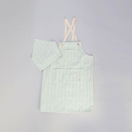 子供っぽくなりすぎない色合いのキッズエプロンと三角巾。ママやパパとお揃いにしてお手伝い。