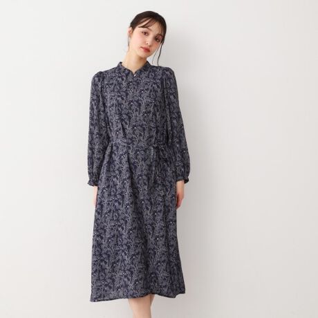 【ウエストリボン付き】ナンテール柄 シフォンワンピース