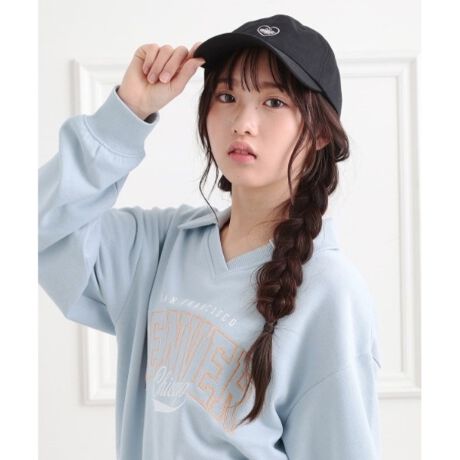 ハートモチーフの刺繍アップリケキャップ。