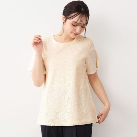 【人気デザインがアップデート!洗える】身頃レースTシャツ