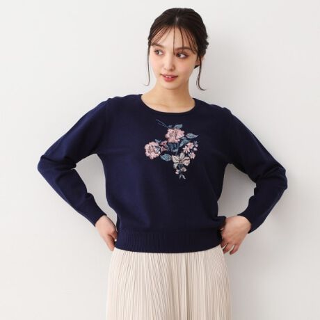 センターに施した刺繍が、春の装いに華を添えます。