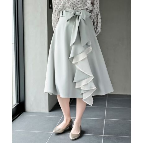 合繊共リボンラッフルフリルスカート