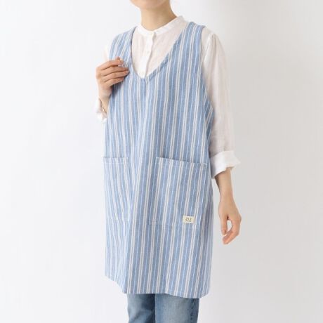 肌触りがよく、長時間着用しても快適。着るだけで、お料理する気分も上がる、シンプル&スタイリッシュなダブルストライプデザインが特徴です。