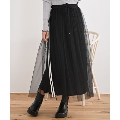 サイドラインでスポーティーなテイストを組み合わせたチュールスカート。