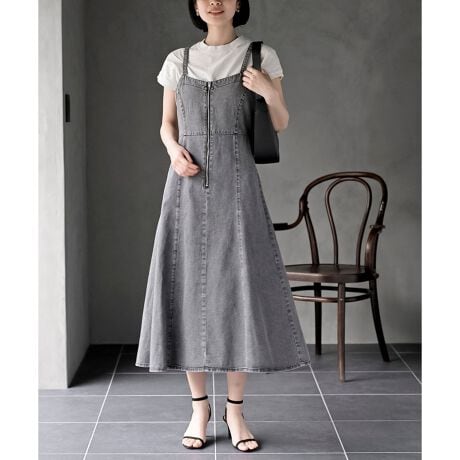 ファスナー使いで洗練感を演出するデニムジャンスカ