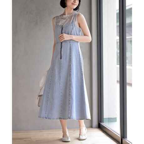 シンプルで使いやすいデニムのジャンスカワンピース。