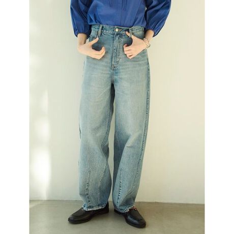 <b>【ゆったりシルエットからのカーブラインでこなれた印象。存在感あるデザインデニム】</b>