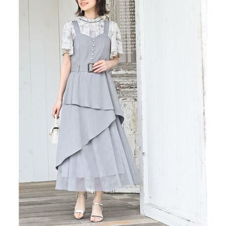 アシンメトリーなティアードデザインで華やかな印象を与えるジャンスカワンピ。