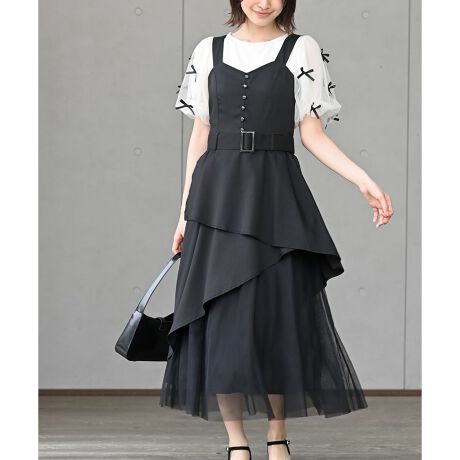 アシンメトリーなティアードデザインで華やかな印象を与えるジャンスカワンピ。