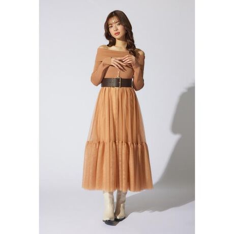 【チュールをたっぷり使ったエレガントなニットワンピース】■ポイントオフショルダーで首元をキレイに見せてくれ、二の腕のカバーも叶います。チュールのスカートには繊細な光沢感のある生地を使用し華やかさを演出。デートシーンにもってこいのワンピースが完成しました。■ディテールウエストはゴムが入っているのでストレスフリーにスタイルアップ。チュールの切り替えを膝上に設定し足長効果も。チュールとニットの配色合わせもポイントに。■スタイリングロングブーツで足元を重めに演出していただくとトレンド感のあるコーデに仕上がります。大事なデートには華奢なブーツかパンプスもおすすめ。■生地透け感:チュールにはあり裏地:スカート部分には裏地あり伸縮性:あり光沢感:チュールには若干あり厚さ:中肉■商品のお気に入り登録お気に入りアイテムの再入荷・在庫1点などの通知を受け取ることができます。[注意事項]※画像の商品はサンプルです。実際の商品と仕様、加工が若干異なる場合があります。※画像の商品は光の照射や角度、お使いのモニター環境により、実物と色味が異なる場合がございます。※着用、お取り扱いの際は、アテンションタグをご確認ください。